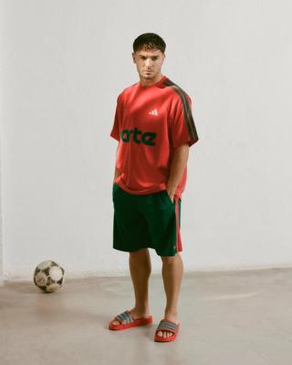 The partnership between Arte and adidas was first confirmed via a Friends & Family-exclusive edition of the Lightblaze POD during Paris Fashion Week®. Arte's inaugural range of offerings to the public focuses on apparel, drawing inspiration from Africa's love of football and the sport's influence on style and community. Numerous co-branded tops and bottoms are included in visuals for the SS26 lineup, with many items donning colors associated with Morocco's flag.