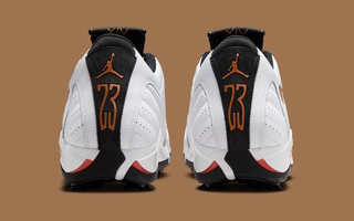 Shared across the sneakersphere by Jacques Slade, the first-look at the pair reveals a simple, but elegant "White/Black/Metallic Copper" color scheme. The medley of tones and its layout across the 27-year-old design fall in line with other golf-ready iterations of Michael Jordan's 14th signature sneaker. Premium leather and the bulk of the midsole opt for a clean "colorless" finish that allows for the slightest contrast to revel in the spotlight. Ferrari-informed Jumpman badges on the lateral profile indulge in a brown shimmer; the mid-foot shank visible underfoot follows suit. Other branding elements on the pair also partake in the "Metallic Copper" fun. Underfoot, the reworked outsole features seven removable spikes, done in all-"Black."