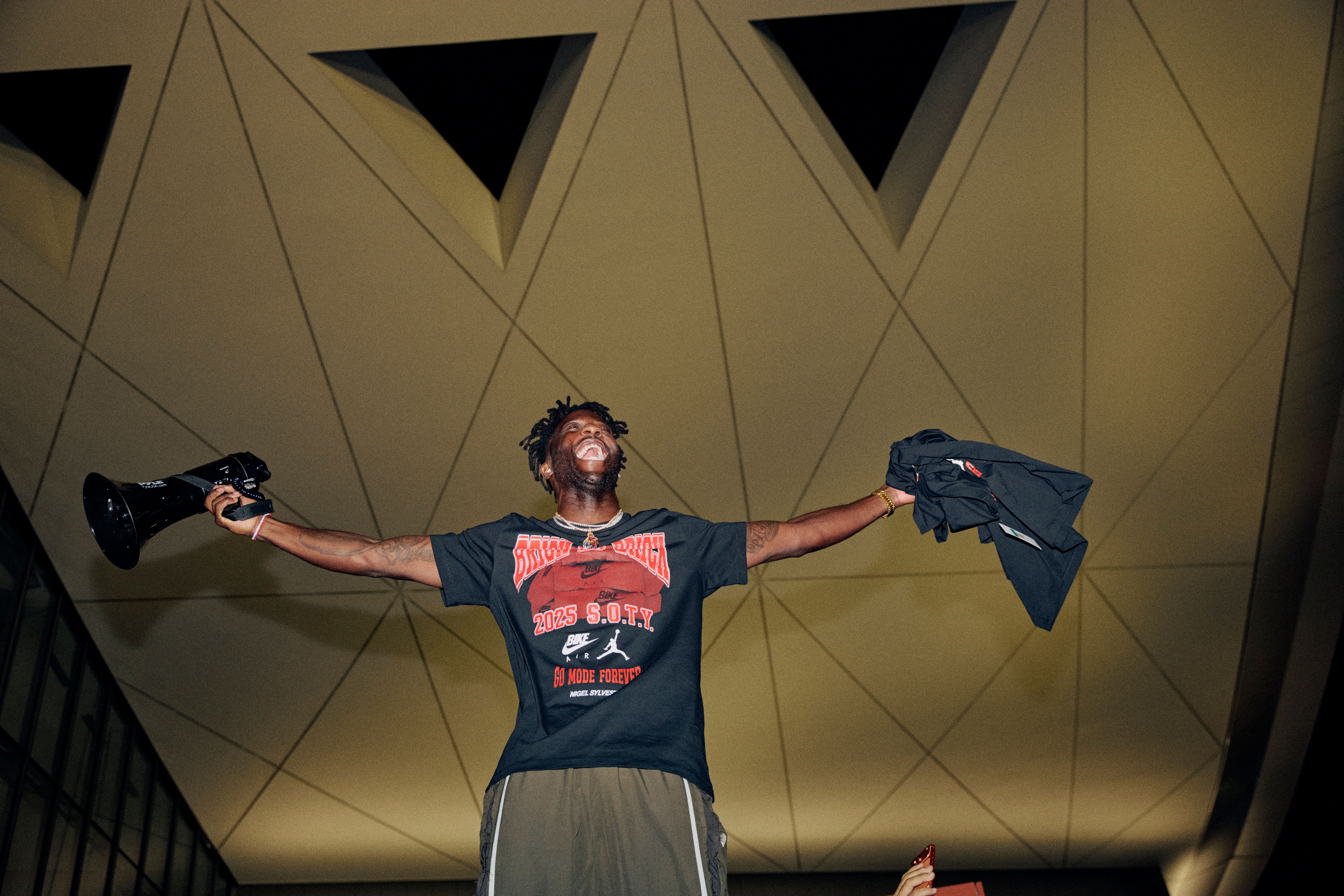 The collaboration, which released earlier this year, reimagined the classic Air Jordan 4 through Sylvester’s creative lens—channeling his “build from the ground up” mantra with a premium Firewood Orange suede upper, aged midsoles, and his signature “Bike Air” branding on the heel. The pair quickly became one of the year’s most talked-about drops, bridging street style, sport, and storytelling in a way few releases have managed to do.