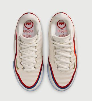 As expected, the sneaker features a color scheme inspired by the U.S. flag. A "Pale Ivory/University Red/Midnight Navy/Metallic Gold" medley of tones takes over the latest Nike LeBron design, with most of the model opting for an off white execution that mimics the Polo Ralph Lauren jacket worn by LBJ during the Olympics.