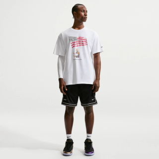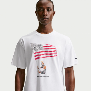A crown-stamped flag appears at the spine of each LeBron 23, reaffirming the "Old Glory" story. A matching graphic t-shirt also depicts James holding the red, white, and blue flag, though he's wearing Team USA Basketball's uniform instead of the aforementioned blazer.