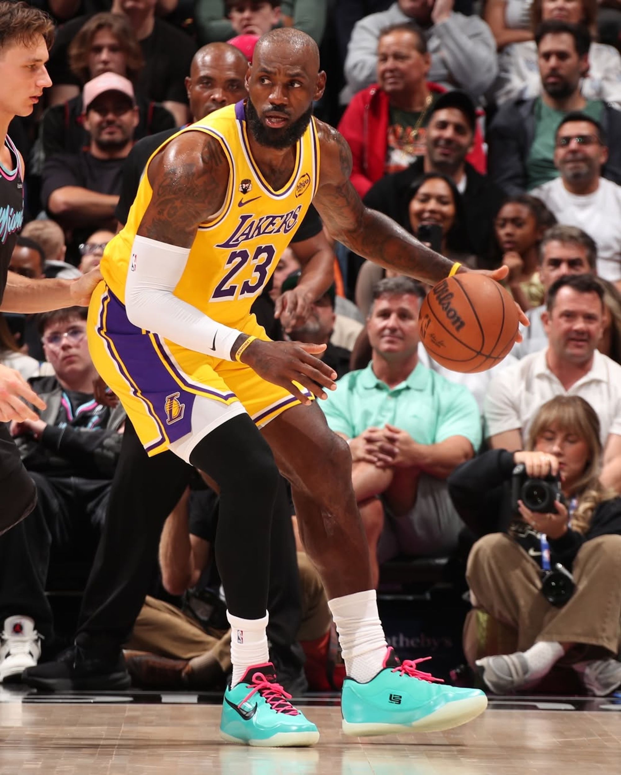 Last night's matchup between the Los Angeles Lakers and Miami Heat might have Luka Dončić's 60 points—the highest for a Laker since Kobe Bryant's final game—as the main headline, but LeBron James has also been the topic of conversation thanks to a new edition of his Nike LeBron 23. In his return to Miami, the four-time NBA champion laced up an exclusive style inspired by the "South Beach" LeBron 8 he debuted prior to the 2010-11 season.