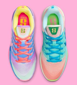 Rather than rewriting the formula, the abrina 3 “What The” leans fully into celebration. The mismatched pair pulls from past Sabrina colorways, stitching together bright pastels, saturated neons, and layered textures into a left-right contrast that feels intentionally loud without losing cohesion. Each shoe tells a slightly different story, from the alternating outsole colors to flipped tongue details and clashing lace treatments that reinforce the playful, anything-goes spirit of the concept.